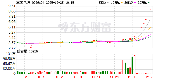 嘉美包装盘中涨停,已连收7个涨停板,截至9:25,该股报8.90元,换手率0.07%,成交量61.85万股,成交金额550.47万元赢盈配资,涨停板封单金额为14.94亿元。连续涨停期间,该股累计上涨95.18%,累计换手率为2.08%。最新A股总市值达85.04亿元,A股流通市值84.49亿元。